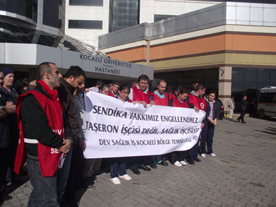Emekçi hegemonyası sadece sembolik müdahalelerle karşı atağa geçmiş değil, bizatihi sermayenin kendisini sağlama aldığını sandığı taşeron sisteminin tam kalbine vurarak, elinde balyozla kendisini çevreleyen “gelenek ve yasa duvarlarını” yıkmaya çalışıyor. Kocaeli Üniversitesi’nde taşeron sağlık işçilerinin kazanımıyla elde edilen hakları hiçe sayan bir ihale yapılmak istenince, işçiler hastaneyi basıp ihaleyi iptal ettirdiler. Kuşkusuz alınacak daha çok yol var ama önemli olan eline balyozu alıp doğru yere vurmaktır. Taşeron sağlık işçileri tam da bunu yapıyor. Sistemin kalbinin attığı yere balyozu yapıştırıyor, işlemez hale getiriyor.
