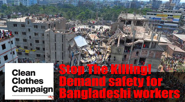 Bangladeşli işçiler, hala binlerce işyerinde, can güvenliği olmadan çalışmaya devam ediyor. Bir süredir olası cinayetleri önlemek için sendikalar ve sivil toplum örgütleri işçilerin can güvenliğini sağlanabilmesi için çalışmalar ve kampanyalar yürütüyorlar. Bugüne kadar bir milyonu aşkın kişi, 2005 yılından bugüne 1700’ü aşkın tekstil işçisinin hayatını kaybettiği Bangladeş’te üretim yaptıran markaları işçilerin hayatlarını güvence altına almaya ve bina güvenliğini sağlamaya çağırıyor.
