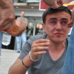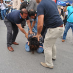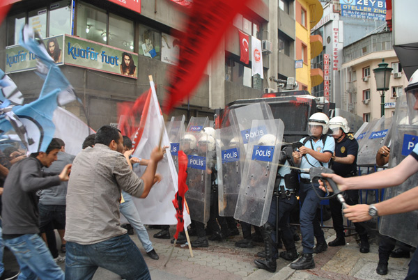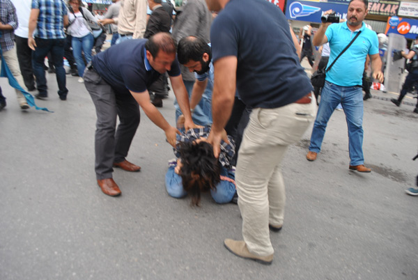 Protesting the government’s suspicious involvement and the events that led to this bloody attack, students in Izmir, following other protests across the country staged a march to the offices of the ruling Justice and Development Party (JDP). It is wide spread belief that the bombs were placed by the Jihadist Sunni groups, the same sect that the Turkish prime minister Erdogan belongs, with or without the knowledge of the Turkish government, so that Erdogan could negotiate better with Obama on his visit for attacking Syria. Students in Izmir demanded the government, Erdogan and his Interior and Foreign Secretary to resign. Although the march was peaceful, as in other protests, the Turkish police attacked the demonstrators.
