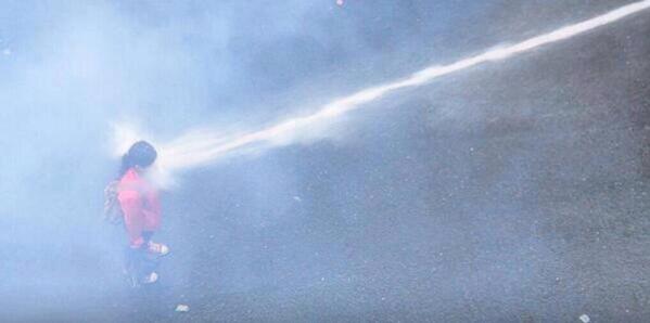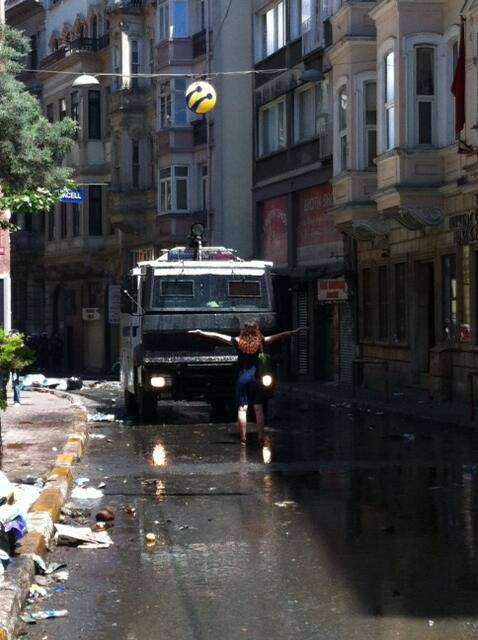 Taksim’de bir kadın TOMA’nın karşısında direniyor/ One woman stands out against the toma (the police vehicle for social happenings)