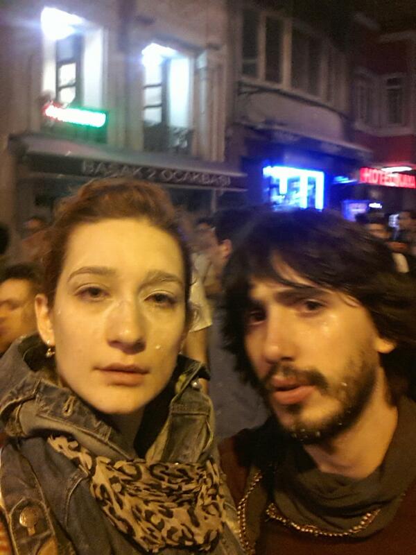 Saat 03.30.. Direniş hala sürüyor. Sıraselviler Caddesi’nde direnenler arasında oyuncu Devrim Evin de var/ 03.30 am… Resistance still goes on. The actor Devrim Evin is there with the protestors in Siraselviler