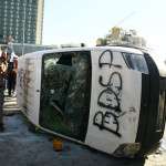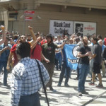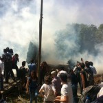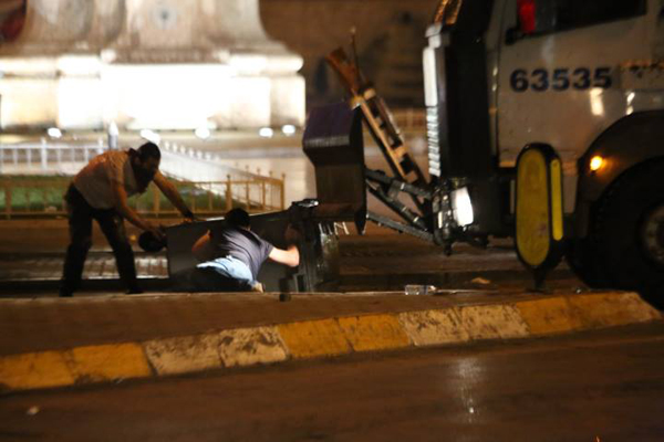 Eylemciler barikatları yıkarken./ The protestors demolish the baricates