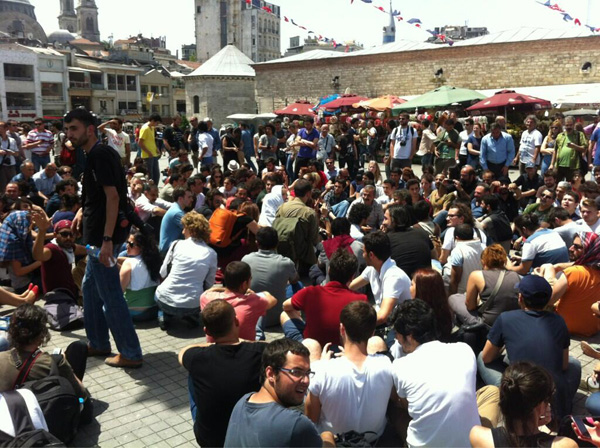 Gezi Parkı etrafında toplanan gruplardan biri/ One of the groups gathering around the Gezi park