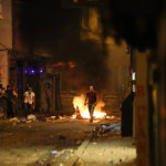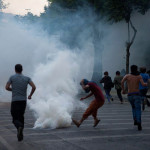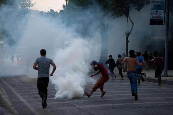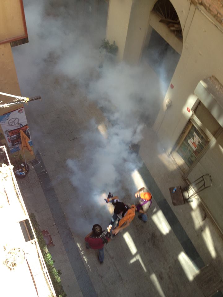 İstanbul Halkevi’nin önü gaza boğuldu, çatışmalar ara sokaklarda da sürüyor. /The Istanbul Halkevi (people’s house) is swamped wıth the tear gas.