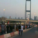 Köprüde yürüyen kitle “Her yer Taksim, her yer direniş” sloganını atıyor/ The slogan of the crowd walking on the bridge “Every where is taksim, resistance in everywhere”