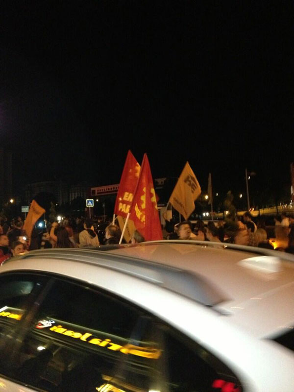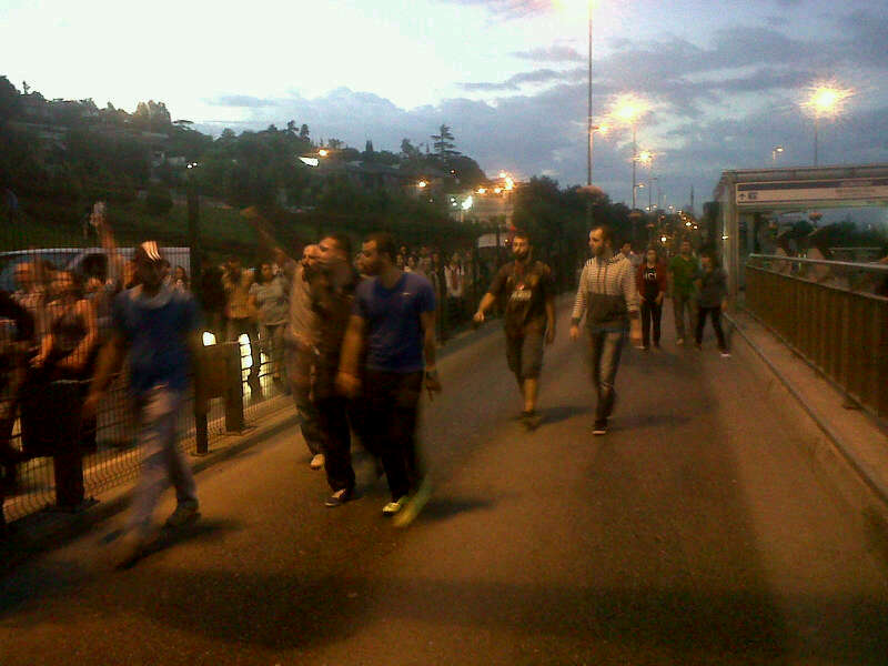 Kadıköy’den Taksim’e yürüyen kitle Çav Bella söyleyerek yürüyor/ The crowd walkıng from Kadıkoy to Taksim singing ‘Cav bella’