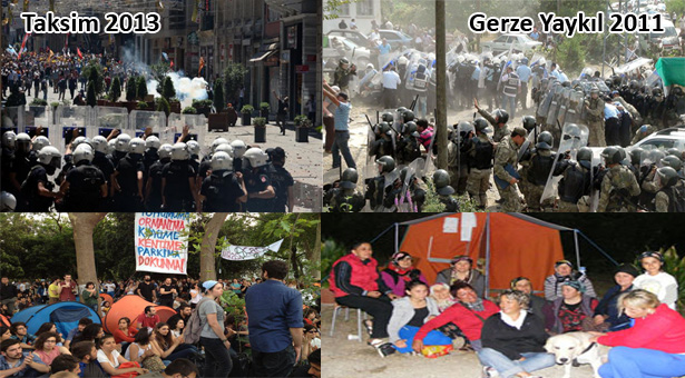 Ülkenin dört yanında bu direnişlere neden olan, doğanın ve yaşamın talan edildiği projeleri kim mi yürürlüğe sokuyordu? AKP iktidarı. Onun bakanları, bürokratları, yasa hazırlayıcıları ve şirketler. Kim mi direnen halkın karşısındaydı? Kalkınma, ekonomik büyüme masalları anlatan medya, AKP’nin ele geçirdiği yargı, para için aleyhte bilirkişi raporları hazırlayan akademisyenler, görmedikleri alanlara ÇED olumlu raporu veren uzmanlar, polis, jandarma…Tek yol vardı: Direniş…Tüm bunlar bir yerden tanıdık geliyor mu? Örneğin Gezi’den?