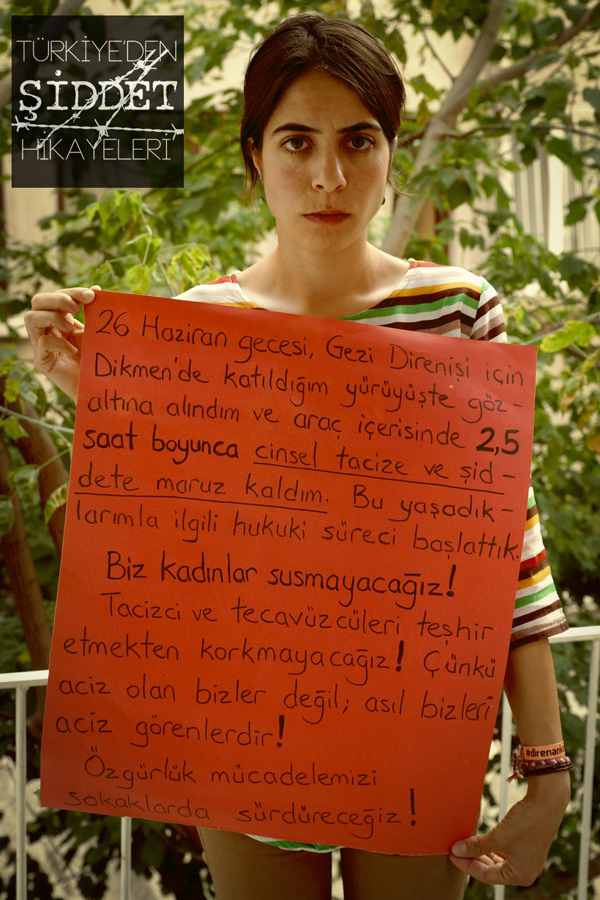 Baskılara, adaletsizliklere, örgütsüzleştirmeye ve yok sayılmaya karşı gelişen Gezi Parkı direnişi veya Taksim isyanı toplumsal mücadeleye çok önemli bir ivme kazandırırken devletin, yine bütün saldırı silahları yanında, kadınlara yönelik küfür ve tacize daha sokaktayken başladığını yukarıda belirtmiştik. Ankara Dikmen’de 25 yaşındaki Halkevi üyesi Eylem Karadağ, arkadaşının oğlu 17 yaşandaki D. ile birlikte 26 Haziran’da polisler tarafından gözaltına alınıp elleri kelepçeli olarak cinsel tacize uğradı.