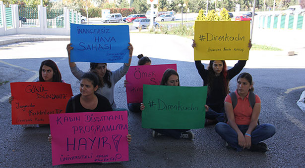 TRT’de kadın düşmanı sözlerle dini program yapan Ömer Tuğrul İnançer Üniversiteli Kadın Kolektifi tarafından protesto edildi. Ömer Tuğrul İnançer ile Gönül Dünyamız isimle programın yayından kaldırılmasını isteyen üniversiteli kadınlar Ankara’da TRT Genel Müdürlüğü’ne gitti. Yetkili kimsenin olmadığı yanıtını alan 8 kadın, bina önünde oturma eylemine başladı.