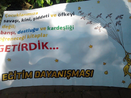 Eğitim Sen’in çağrısıyla biraraya gelen Eğitim dayanışması, bugün çocuklara barışı, kardeşliği, dostlupu anlatan kitaplar dağıttı.