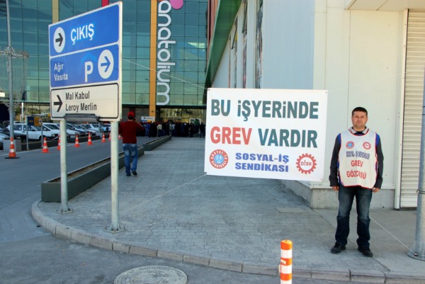 DİSK’e bağlı Sosyal-İş Sendikası’nın örgütlü olduğu Leroy Merlin işletmelerinde, Toplu İş Sözleşmesi görüşmelerinde işverenin uzlaşmaz bir tavır sergilemesi ve bunun sonucu sendikanın başlattığı grev sadece Ankara ile sınırlı değil, işletmenin Bursa işyerinde de grev sürüyor. Leroy Merlin grevini her gün pek çok kurum ziyaret ediyor.