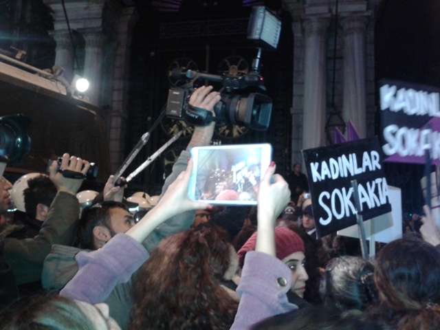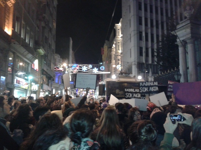 Kadınların her yıl 25 Kasım’da sokaklara çıktığı İstiklal Caddesi polis ablukasına alındı. Kadınlar oturma eylemlerini polisin engellemelerine rağmen devam ettirdi.