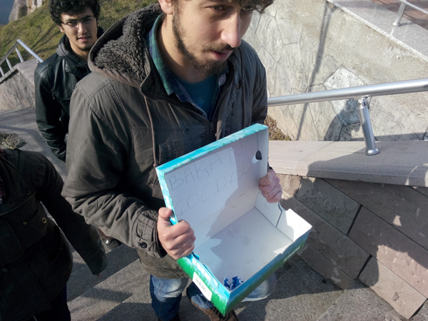 Zonguldak’ta üniversiteliler rüşvet ve yolsuzluk skandalını ayakkabı kutularıyla protesto etti