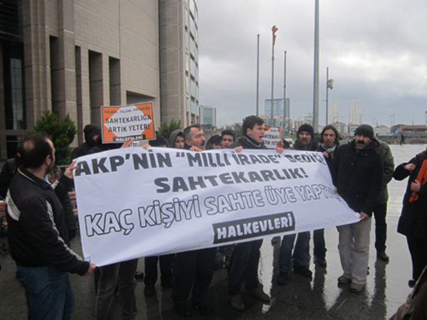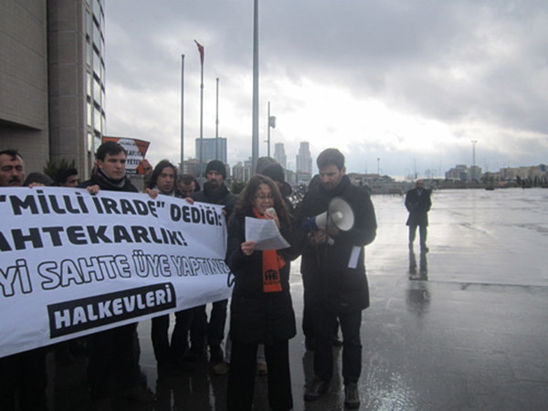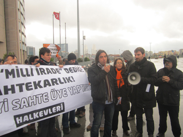 Ersoy’un ardından söz alan Ruhi Kara, AKP’nin hırsızlıklarına, yolsuzluklarına bir de bu sahtekarlığı eklediğini; ‘milli irade’den söz eden AKP’nin kendisini iradesi dışında üye yaptığını söyledi.