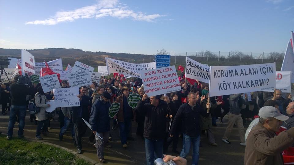 Odayeri, Ağaçlı, Akpınar, Yeniköy ve İhsaniye’den otobüslerle Ağaçlı Kavşağı’na gelen köylüler burada Kuzey Ormanları Savunması ile buluşarak, yaklaşık bir saat boyunca otoban üzerinde eylem yaptı.