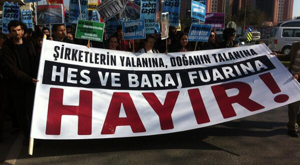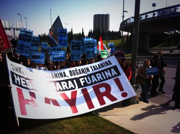İstanbul’da DSİ desteği ile Demos Fuarcılığın düzenlediği “Barajlar ve HES Yapım Teknolojileri Fuarı” fuar alanı önünde protesto edildi. Metro çıkışında buluşan eylemciler fuar alanına bir yürüyüş düzenledi. Yürüyüş sırasında “Doğa’nın katili Ali Veysel Eroğlu”, “Hes yapma boşuna, yıkacağız başına” sloganları atıldı, Hopa’da polis saldırısında öldürülen Metin Lokumcu ve Haziran İsyanı’nda yitirilenler anıldı.