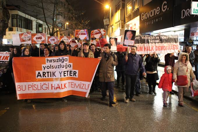 20.08 İzmir’de binlerce kişi Basmane’ye yürüyor. Sloganlar: “Yolunuz yolsuzluk yolu”, “Baba-oğul oldular, Türkiye’yi soydular”, “Hırsızsın sen Tayyip”.