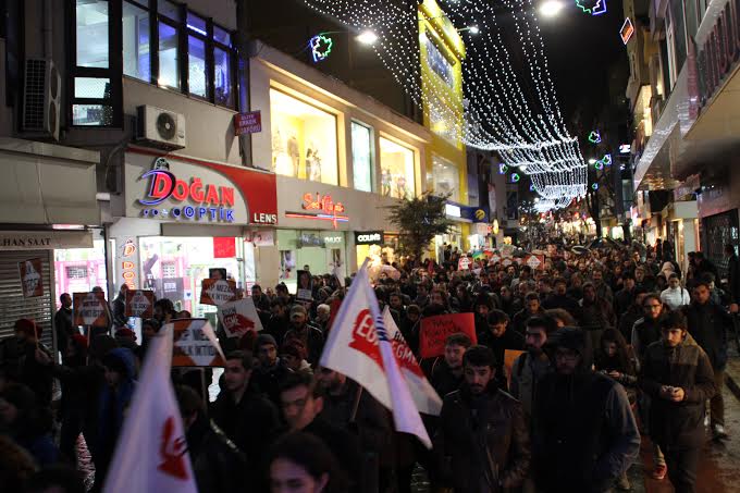 19.02 Çanakkale’de İskele Meydanı’ndan başlayan yürüyüş emniyete giden cadde boyunca sürdü. Elliye yakın çevik kuvvet polisinin koruduğu AKP seçim bürosu önünde “Hırsız” sloganları atıldı. Şu an emniyet binasına yürünüyor.