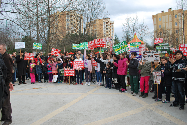 Parkın ticari alana dönüştürülmesi sırasında Küçükçekmece Belediyesi’ne bağlı ekipler parktaki ağaçları kesmek için gelmiş ancak karşılarında Atakent halkının bulduklarından ağaçları kesemeden gitmişlerdi.