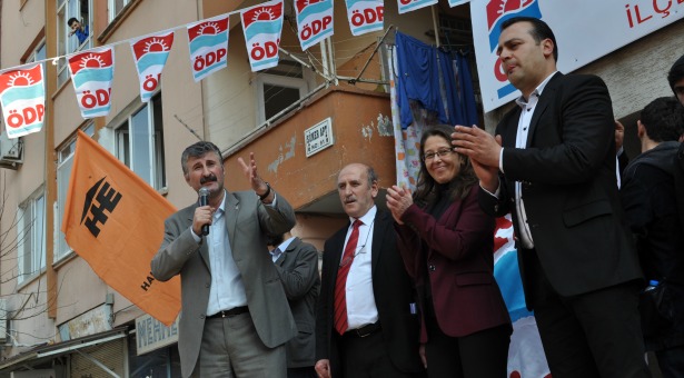 Ersoy’dan sonra söz alan ÖDP Eş Başkanı Alper Taş ise Defne halkını Arapça selamladı. Defnenin örnek bir kent olacağını vurgulayan Taş, “Defne halkı Suriye için direndi, direniyor. Emperyalist güçler