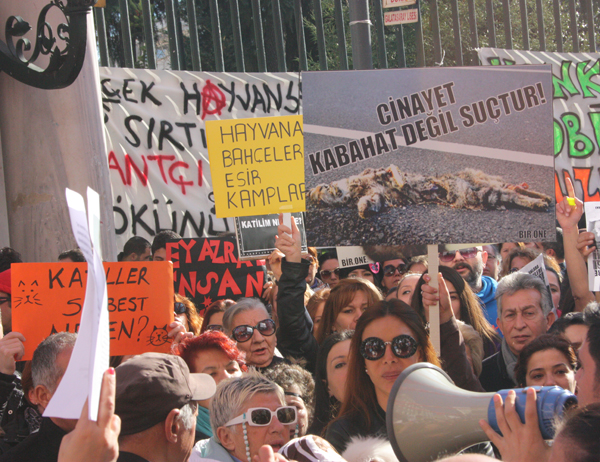 İstanbul’da hayvan hakları savunucuları Nişantaşı Kedili Park’ta saat 13’de buluştu. Cumhuriyet Caddesi boyunca yapılan yürüyüş, Talimhane ve Tarlabaşı’nda devam etti, Galatasaray Lisesi’ne kadar sürdü. Polisler, yürüyüşün Taksim’e çıkmaması için özel çaba sarf ederken Divan Oteli önünde polis barikatı kuruldu. Eylemde “Vur vur inlesin parlamento dinlesin”, “Hayvanlara kalkan eller kırılsın” sloganları atıldı.