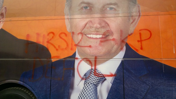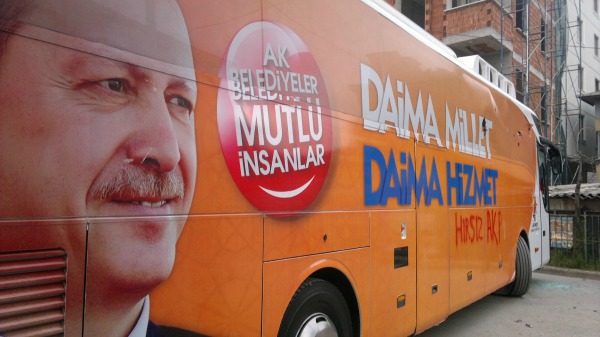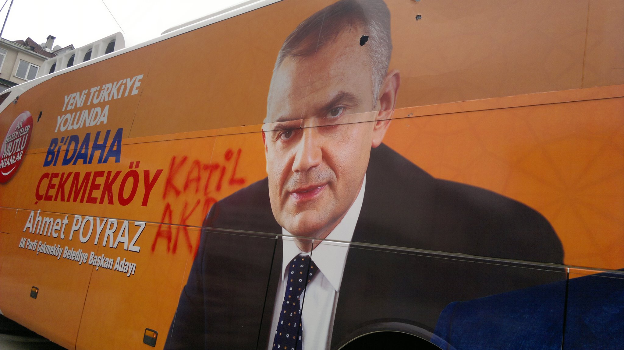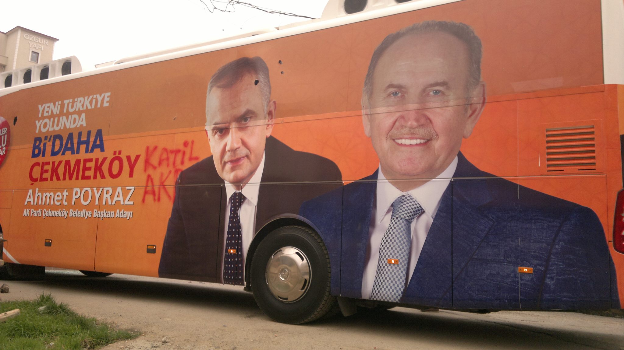Sarıgazi Cemevi önünden bugün (7 Mart) saat 14.30 sularında geçen AKP seçim aracına devrimciler müdahale etti.