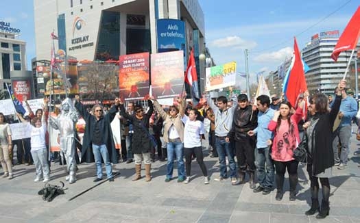Başkent Dayanışması bileşenleri Dünya Tiyatrolar Günü nedeniyle AOÇ’deki kıyımı bir tiyatro ile anlattı. Dayanışma bileşenleri ve tiyatro gruplarının Menekşe Sokak’ta başlayan yürüyüşü “Her yer sanat her yer direniş”, “TÜSAK’a hayır yaşasın sanat” sloganları ile Güvenpark’a kadar devam etti. Burada Başkent Dayanışması Tiyatro Topluluğu’nun “Alo Babacım AOÇ’de Ne Yapıyoruz?” isimli oyunu sergilendi.