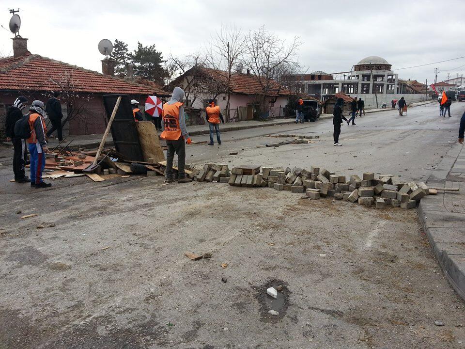18.51 Ziya Gökalp Caddesi’ne barikat kuruluyor.