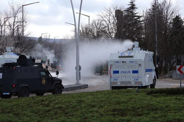 14.38 ODTÜ’lülerin yerleşkeden çıkışı sırasında TOMA ve çevik kuvvet karşı şeritten gelerek saldırdı. Saldırı sonrasında kalabalığın büyük kısmı yerleşkeye geri dönmek zorunda kaldı. Eskişehir Yolu’nda yürüyüşünü sürdürmeye çalışan bazı üniversiteliler de saldırının yoğunlaşması üzerine yerleşkeye çekildi. A1 kapısında gaz ve ses bombalarıyla, tazyikli sularla yapılan polis saldırısına karşı barikatlar kuruluyor.