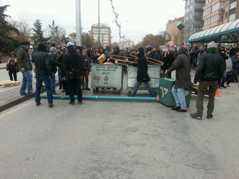 15.53 Cebeci’de polis geri çekildi, Kızılay yolu açıldı. Üniversiteliler üzerinde “Berkin Elvan Barikatı” yazan barikat malzemeleriyle Kızılay’a yürüyor.