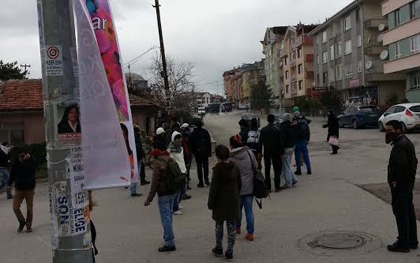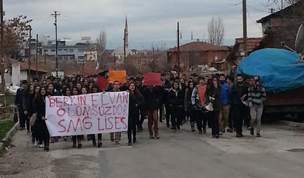 14.14 Tuzluçayır’da Suzan-Mehmet Gönç Lisesi’nden 100 kadar öğrenci, ellerinde Berkin Elvan’ın resimleri ve “Berkin Elvan ölümsüzdür” sloganlarıyla Cami-Cemevi’ne doğru yürüyüşe geçti.
