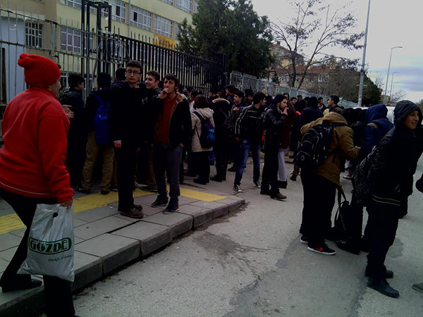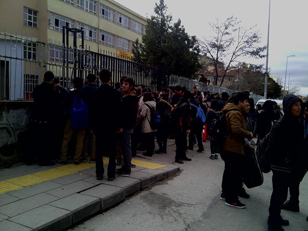 12.54 Tuzluçayır Anadolu Lisesi öğrencileri ders boykotu ilan etti. Okulun bahçesinde bir araya gelen yaklaşık 150 kişi, arkadaşlarını da boykota çağırmak istedi fakat okul yönetimi kapıları kapattı ve öğrencileri okula kilitlemiş oldu.