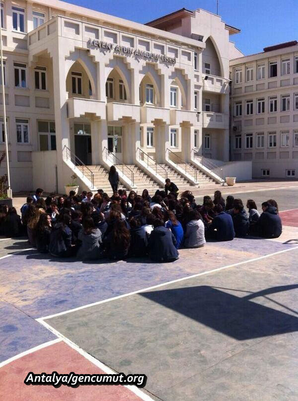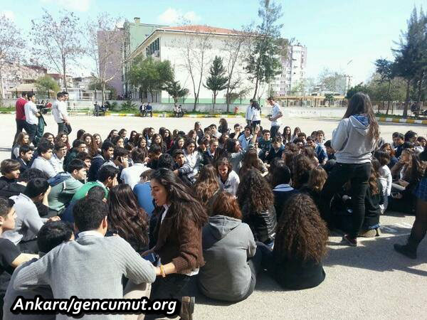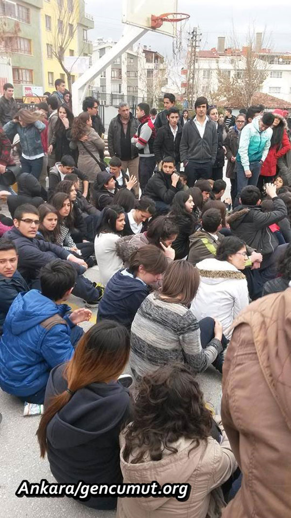 12.50 Ankara Celal Yardımcı Anadolu Lisesi öğrencileri oturma eyleminde.