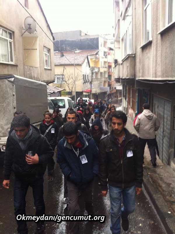 14.16 Suzan-Mehmet Gönç Lisesi’nden 100 öğrenci Berkin Elvan resimleriyle Cami-Cemevine yürüyor.