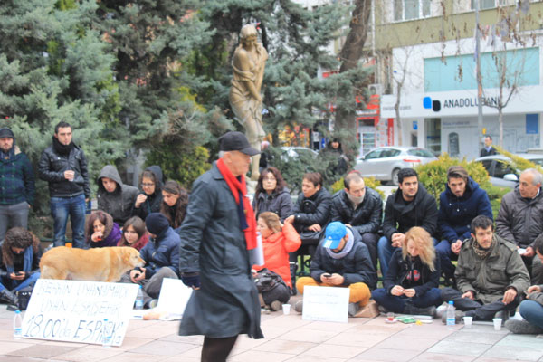 13.14 Eskişehir Halkevi Başkanı Gürkan Çelik oturma eylemi başlattı.