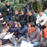 13.58 Tarsus Halkevi ve Genç Umut üyeleri Özgürlük Meydanı’nda (Yarenlik alanı) oturma eylemi başlattı.