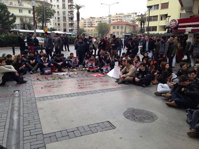 14.59 İzmir Konak Kaymakamlığı önünde Berkin için oturma eylemi.