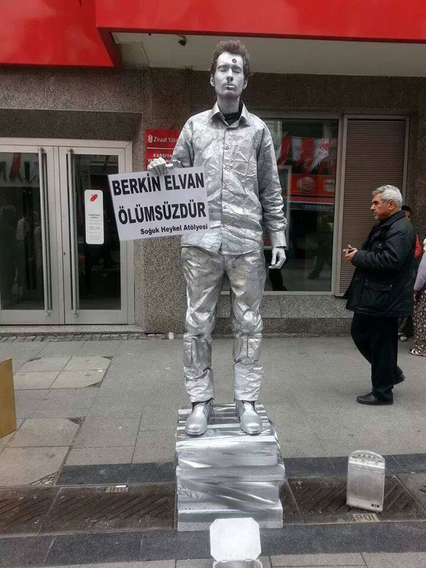 9.48 Ankara Güvenpark’ta bir Halkevci elinde ben Berkin Elvan yazılı bir döviz ve bir ekmekle durmaya başladı.
