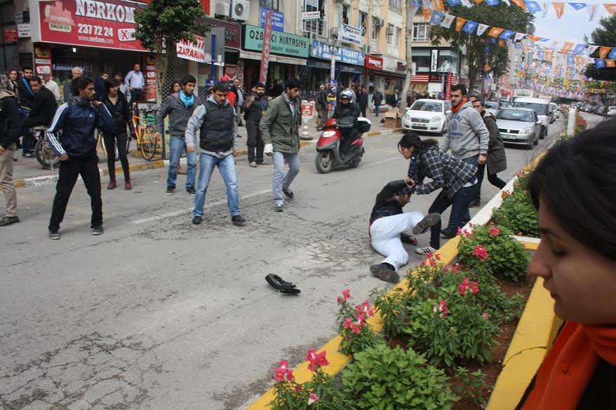AKP belediye başkan adayı isminin yazılı olduğu bir araç Halkevi yöneticisine çarptı. Ayağına darbe alan Onur Yıldırım hastaneye kaldırıldı. Silifke Caddesi üzerinde tekrar toplanan Mersinliler gözaltına alındı