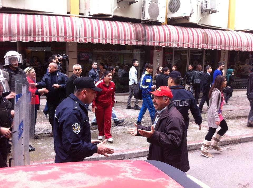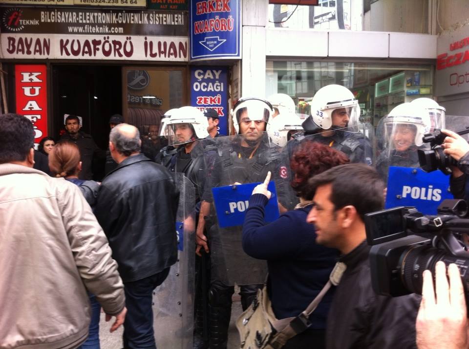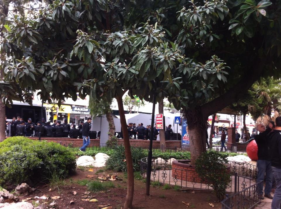Mersin’de Tayyip Erdoğan’ın yapacağı miting öncesinde olağanüstü hal koşulları oluşturuluyor. Berkin’in katiline karşı 12’de toplanma çağrısı yapan Mersinliler Özgür Çocuk Parkı’nda. Polis AKP belediye başkanı adayının aracı protesto edilince caddeyi kapattı, ‘hırsız var’ diyeni gözaltına aldı