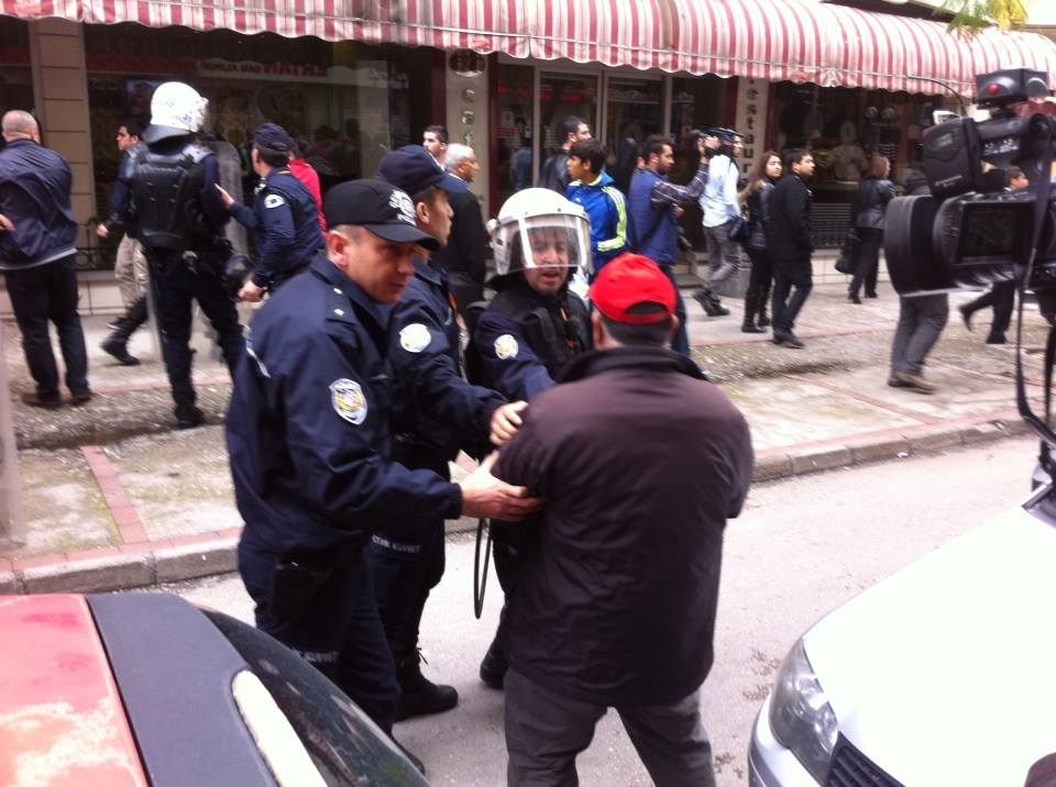14.31 Erdoğan’ın Mersin’e gelmesini protesto eden ve ”Berkin’in katili hırsız AKP hesap verecek” pankartıyla AKP mitinginin yapıldığı stadyuma yürüyen Gençlik Muhalefeti üyesi 10 kişi gözaltına alındı. (Muhalefet.org)