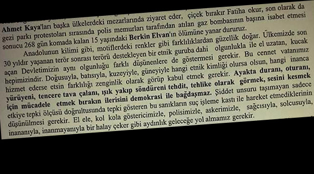 Yaşanan darbe sonrasında 17 yaşında farklı düşünüyor diye asılan Erdal Eren’in ardından yazılan ‘Son Bakıştaki O Gözler Kaldı Aklımızda’ şarkısını dinler, farklı düşündüğü için rahmetli Muhsin Yazıcıoğlu’na Mamak Cezaevi’nde yapılan işkenceleri dile getirdiği ‘Üşüyorum’ şiirini okudukça yapılan zulümlere yanar, farklı düşünüyor diye yazar Sabahattin Ali’yi Istıranca Dağları’nda öldürdüğümüze yanar, farklı düşündüğü için ülkemizden kaçmak zorunda kalan Nazım Hikmet’leri, Ahmet Kaya’ları başka ülkelerdeki mezarlarında ziyaret eder, çiçek bırakır Fatiha okur, son olarak da Gezi Parkı protestoları sırasında polis memurları tarafından atılan gaz bombasının başına isabet etmesi sonucu 268 gün komada kalan 15 yaşındaki Berkin Elvan’ın ölümüne yanar dururuz. Anadolu’nun kilimi gibi, motiflerdeki renkler gibi farklılıklardan güzellik doğar. Ülkemizde son 30 yıldır yaşanan terör sonrası terörü destekleyen bir etnik gruba dahi olgunlukla eli uzatan, kucak açan devletimizin, aynı olgunluğu farklı gruplara da göstermesi gerekir… Ayakta duranı, oturanı, yürüyeni, tencere tava çalanı, ışık yakıp söndüreni tehdit, tehlike olarak görmek, sesini kesmem için mücadele etmek, bırakın ilerisini demokrasi ile bağdaşmaz.