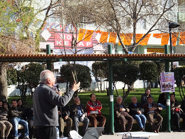 Her mahallede halk meclisleri kurulacağını, kararların hep birlikte alınacağını belirten Güvenç, elektrik, su, ulaşım gibi temel insan haklarının adaletli ve parasız bir biçimde sağlanabileceğini de örneklerle anlattı.