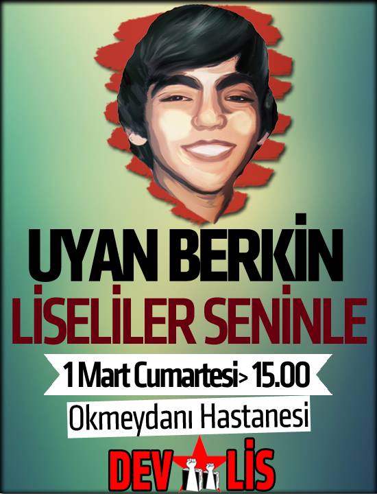 Devrimci Liseliler, ”Berkin Elvan onurumuzdur, her zaman, her yerde onu sahipleniyor, onu unutmuyoruz” diyerek 1 Mart’ta herkesi saat 15.00’da Berkin Elvan’ın yanına gitmek için Okmeydanı Hastanesi’ne çağırıyor.