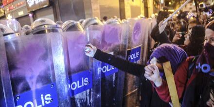 Polis, pankartlarıyla CHP binası önünde kurulmuş olan barikatın önüne gelen binlerce kadının Taksim Meydanı’na çıkmasını engelledi. Sloganlarla saatlerce barikatın önünde bekleyen kadınlar, sık sık polis barikatını zorladı. Polislerin kalkanlarını mor spreylerle boyayan kadınlar şarkılarla, türkülerle, halaylarla barikatın önünde uzun süre bekledikten sonra, 9 Mart’ta Kadıköy’de gerçekleşecek olan mitinge çağrı yaparak “Yaşasın 8 Mart” sloganlarıyla eylemi sonlandırdı.