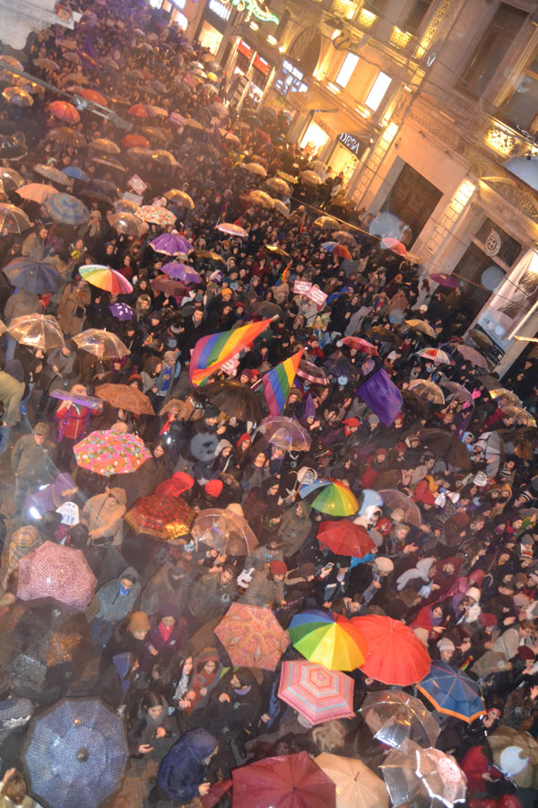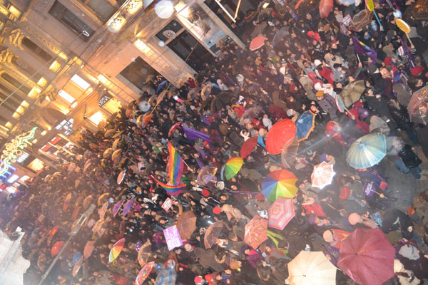 12. Feminist Gece Yürüyüşü için Galatasaray Meydanı’nda buluşan kadınlar aylar sonra İstiklal Caddesi’ndeki yürüyüş yasağını deldi. Cadde boyunca yürüyen kadınlara polis CHP binası önünde barikat kurdu. Kadınlar saatlerce barikat önünde direndi