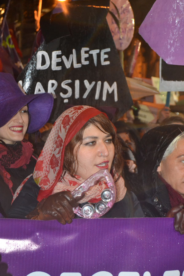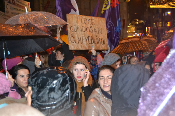 Eylemde AKP’nin hırsızlık ve yolsuzluklarına karşı da tepkilerini dile getiren kadınlar “Hırsız var”, “Katil var”, “İsyan” çığlıkları attı. Gündemlerinde bir de iki gün önce iki kez koruma talep ettiği halde korunmadığı için eski sevgilisi tarafından öldürülen Özge Gündoğan da anıldı.