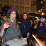 Feministlerin çağrısıyla 12. Gece Yürüyüşü için bir araya binlerce kadın “Taksim Meydanı’nın yürüyüş yasağını kaldıracağız” diyerek 8 Mart’ta Galatasaray’da buluştu. Taksim Meydanı’na doğru yürüyüşe geçen kadınlar aylardır eylem, basın açıklaması ve yürüyüşlere kapatılmış olan İstiklal Caddesi’ni yürüyüşe yeniden açtılar. “Geceleri de, sokakları da, meydanları da terk etmiyoruz” pankartı taşıyan kadınlar, yürüyüş boyunca coşkulu sloganlarla, zılgıtlarla, düdüklerle seslerini duyurdular.