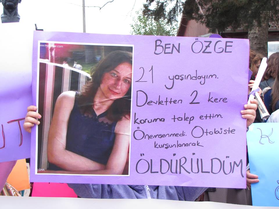8 Mart’a iki gün kala otobüste herkesin gözü önünde eski sevgilisi tarafından vurularak öldürülen üniversite öğrencisi Özge için Üniversiteli Kadın Kolektifi üyesi kadınlar bir basın açıklaması gerçekleştirdi. Saat 12.15’te merkez postane önünde toplanan üniversiteli kadınlar: “Özge’yi öldüren, her gün onlarca kadın şiddete tacize ya da tecavüze maruz kalırken hatta öldürülürken suçluları salıveren kadın düşmanı AKP’dir. Yarın öldürülen bizler olabiliriz. Özge’nin katilleri hesap verecekler bizler yasta değil isyandayız” diyerek, Trabzon Demokratik Kadın Platformunun saat 14.00’da gerçekleştireceği 8 Mart yürüyüşüne çağrı yaparak basın açıklamasını sonlandırdılar.