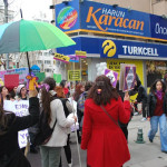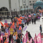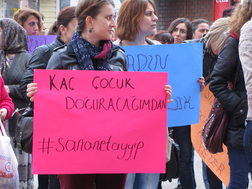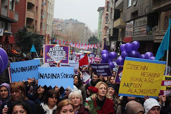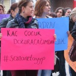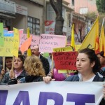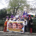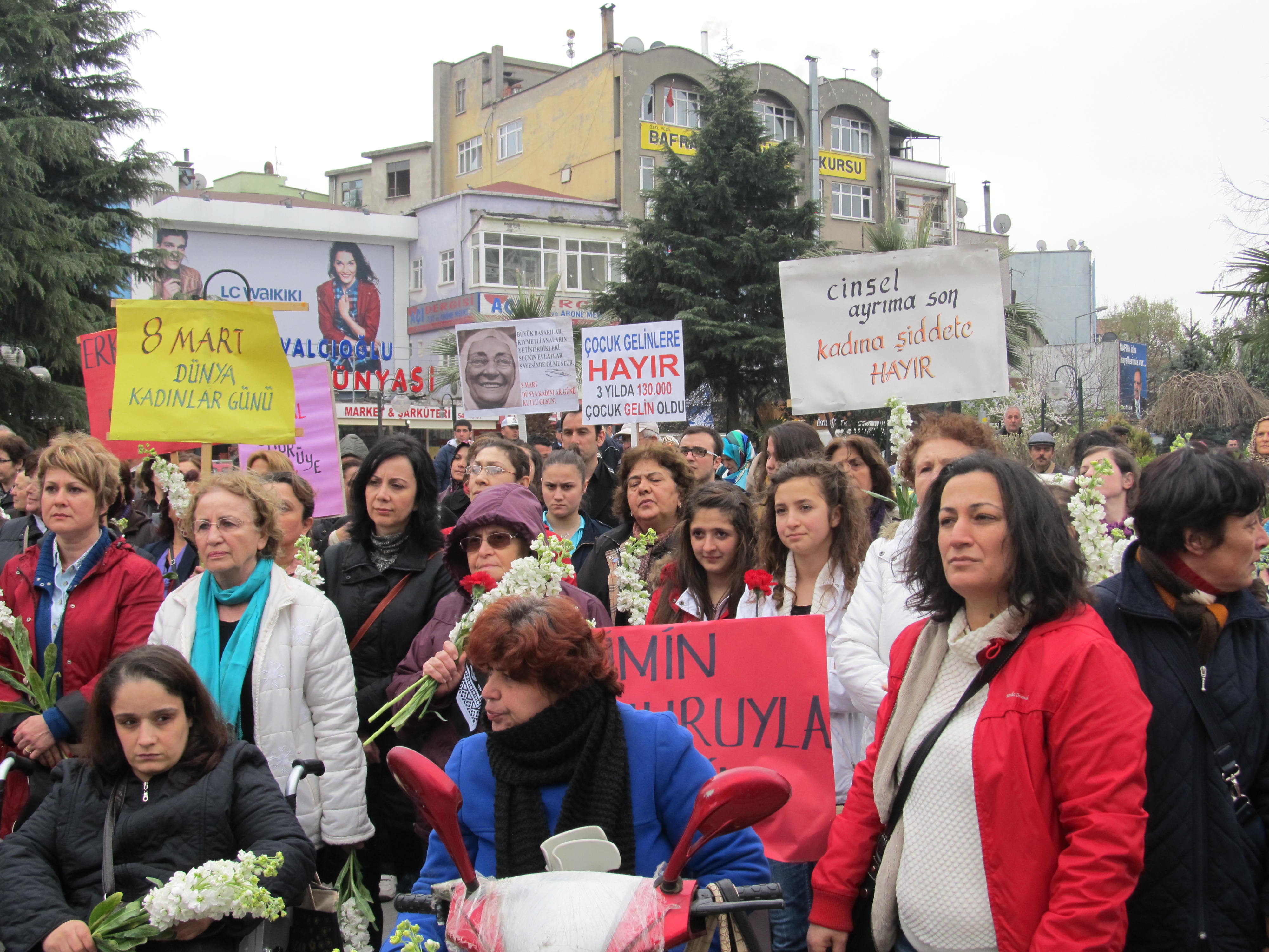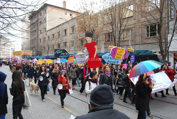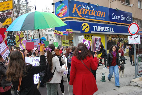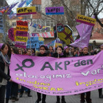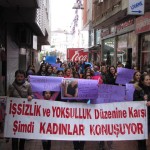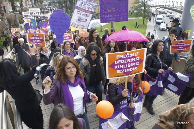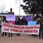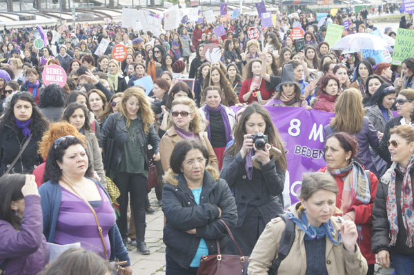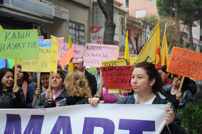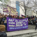 Çanakkale’de eski salı pazarı önünde saat 13.00’da toplanan yüzlerce kadın Cumhuriyet Meydanı’na doğru yürüyüş yaptı.Yürüyüş boyunca ”AKP’den hesabı kadınlar soracak”, “Devlet elini bedenimden çek”, “Kadınların isyanı AKP’yi yıkacak” sloganları atıldı.
